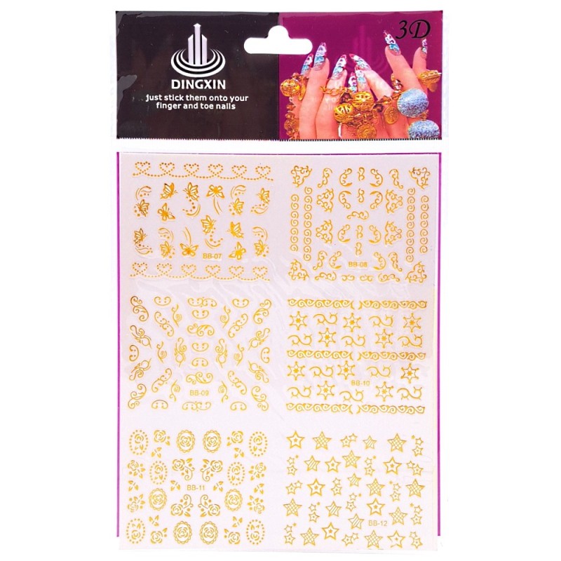 Διακοσμητικά Αυτοκόλλητα Νυχιών 3D Nail Art Gold