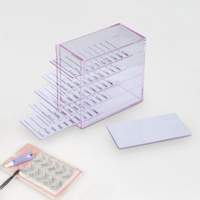 - Ακρυλικό Transparent Pink Κουτί Αποθήκευσης & Οργάνωσης Βλεφαρίδων με 5 Επίπεδα
