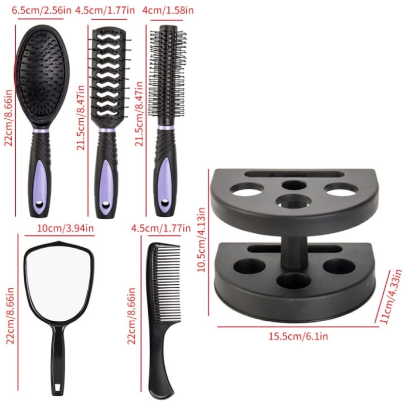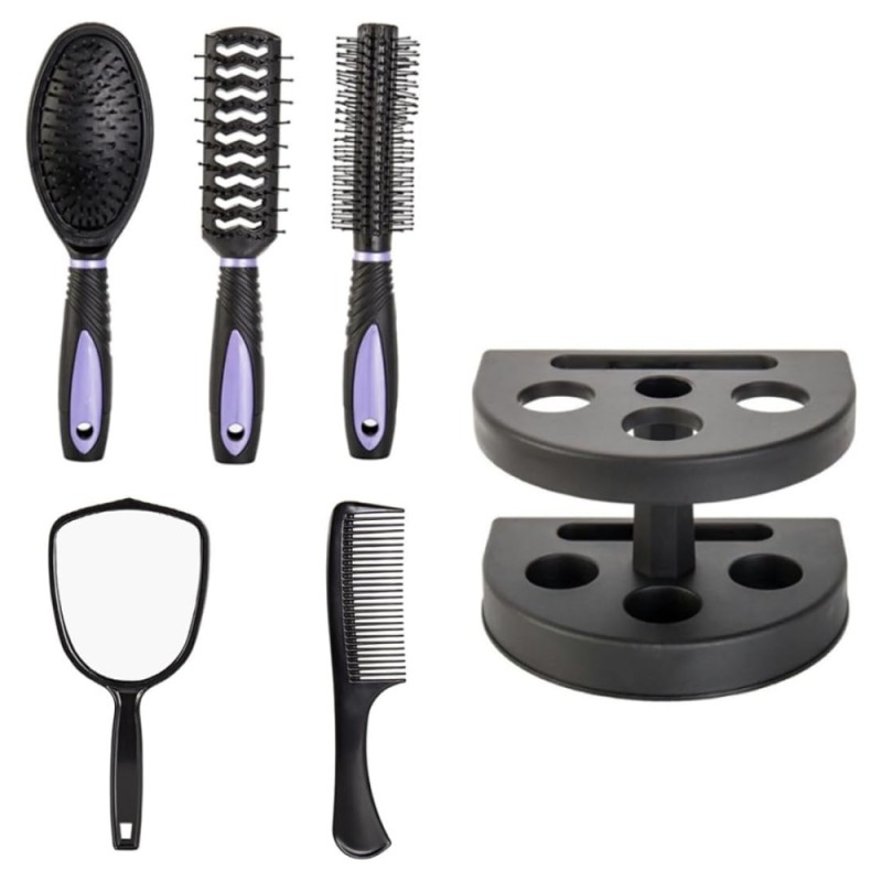 - Σετ 4 Βούρτσες Μαλλιών με Βάση Οργάνωσης & Καθρέφτη