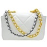 Λευκή Καπιτονέ Τσάντα με Χρυσαφί & Γκρι Μετταλλική Αλυσίδα