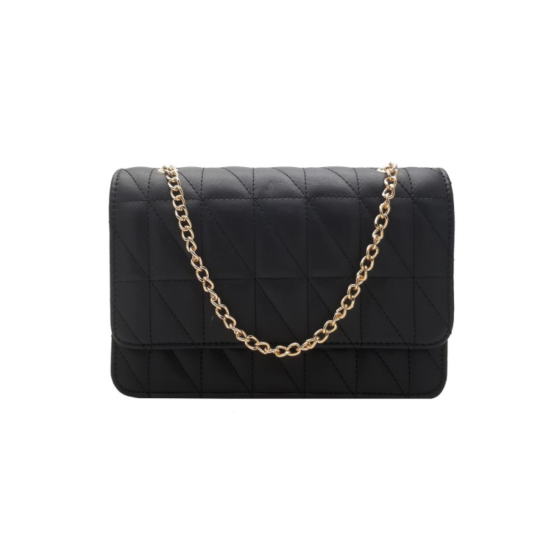 Μαύρη Τσάντα με Σχέδιο Ραφές & Χρυσαφί Αλυσίδα 22X17CM