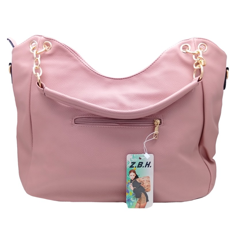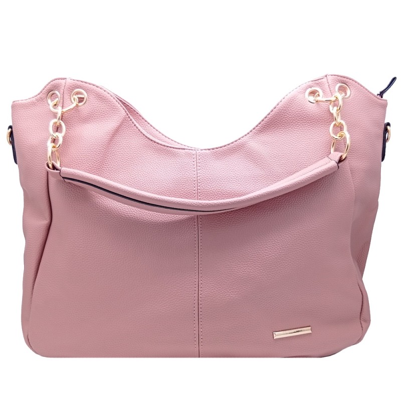 - Μεγάλη Ροζ Τσάντα Ώμου & Χιαστί με Χρυσαφί Λεπτομέρειες