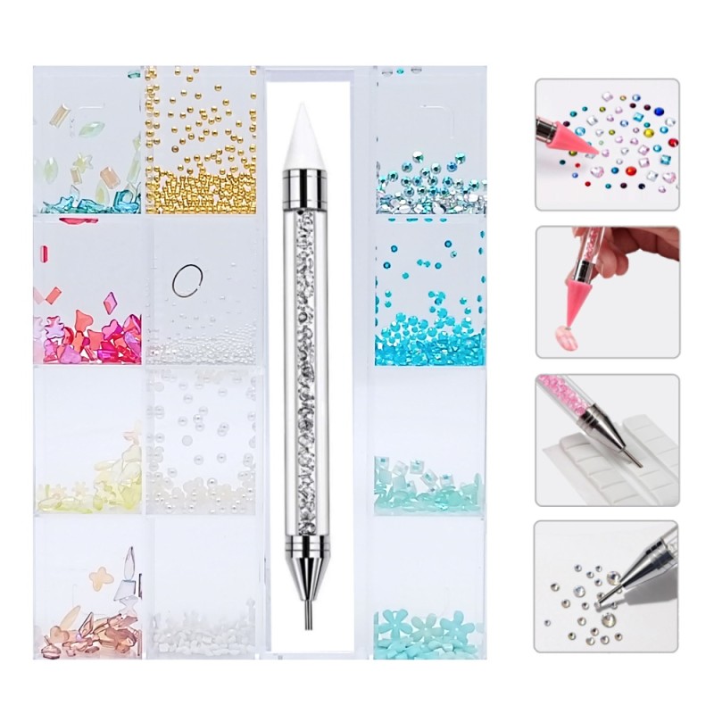 Κασετίνα με Διακοσμητικά Νυχιών & Nail Rhinestone Pick Up Pen
