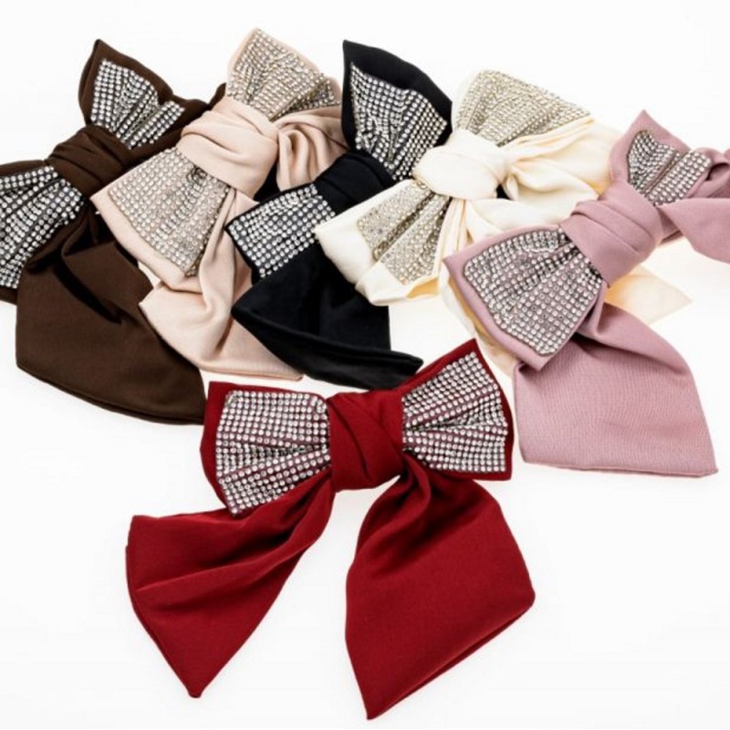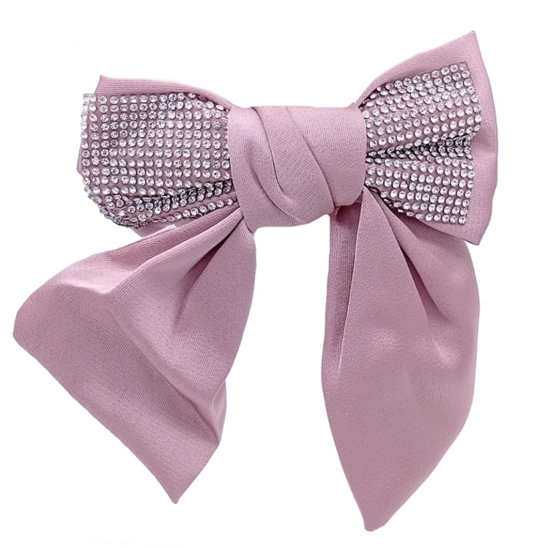 Σατέν Glam Φιόγκος με Strass & Μεταλλικό Clip