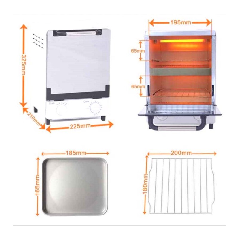 Χαρακτηριστικά Iσχύς: 1000 Watt Ρυθμιζόμενος Θερμοστάτης έως 250 βαθμούς Κελσίου Κουρδιστός Χρονοδιακόπτης από 0 έως 30 λεπτά με ήχο Εξωτερικές Διαστάσεις: 28x27x39 cm Εσωτερικές Διαστάσεις: 23x21x33 cm Χωρητικότητα: 12 lt Βάρος: 3.25kgs Εξωτερική μεταλλική με ηλεκτροστατική βαφή Εσωτερική γαλβανισμένη λαμαρίνα Σχάρα εργαλείων Δίσκος εργαλείων