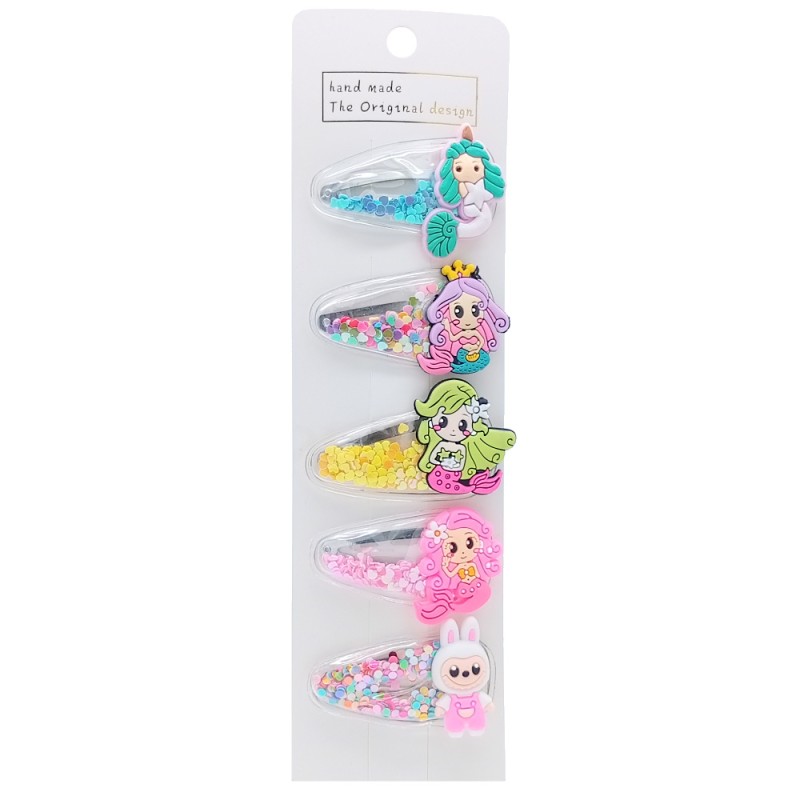 Σετ 5 Παιδικά Τσιμπιδάκια 3D με Κομφετί Καρδούλες