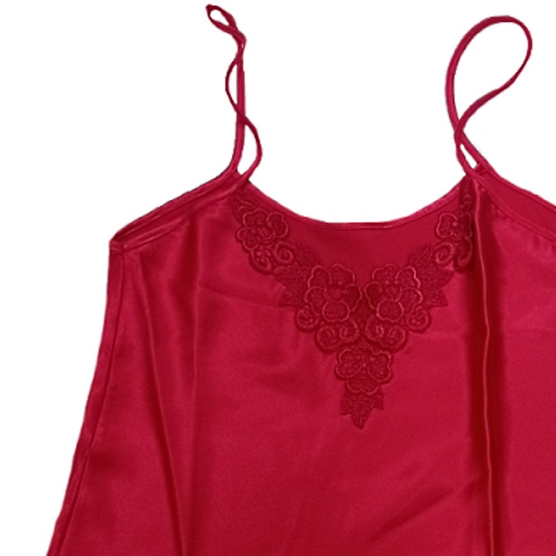 Κόκκινο Νυχτικό Ραντάκι με Κέντημα Λουλούδια