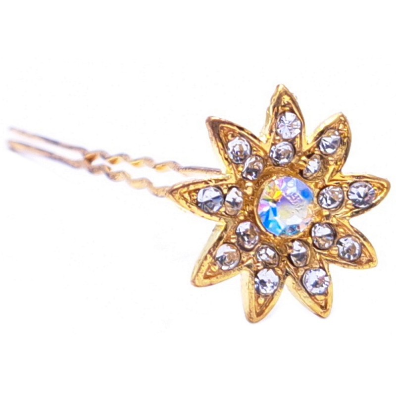 Χρυσό Διακοσμητικό Λουλούδι με Διαμαντάκια σε Φουρκέτα Τιμή/ Τεμάχιο