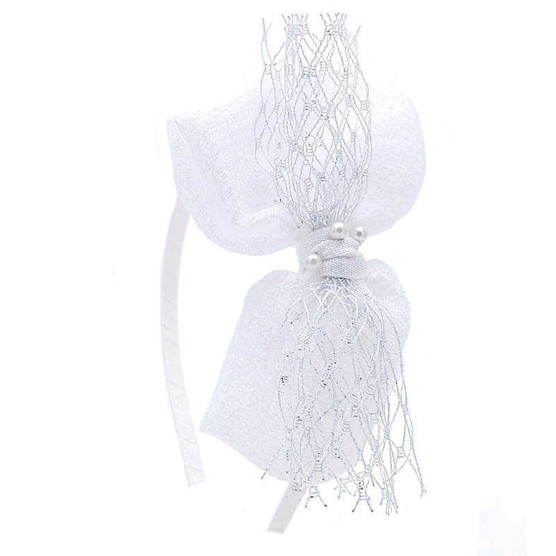 - Λευκή Παιδική Στέκα με Glitter Δίχτυ & Πέρλες