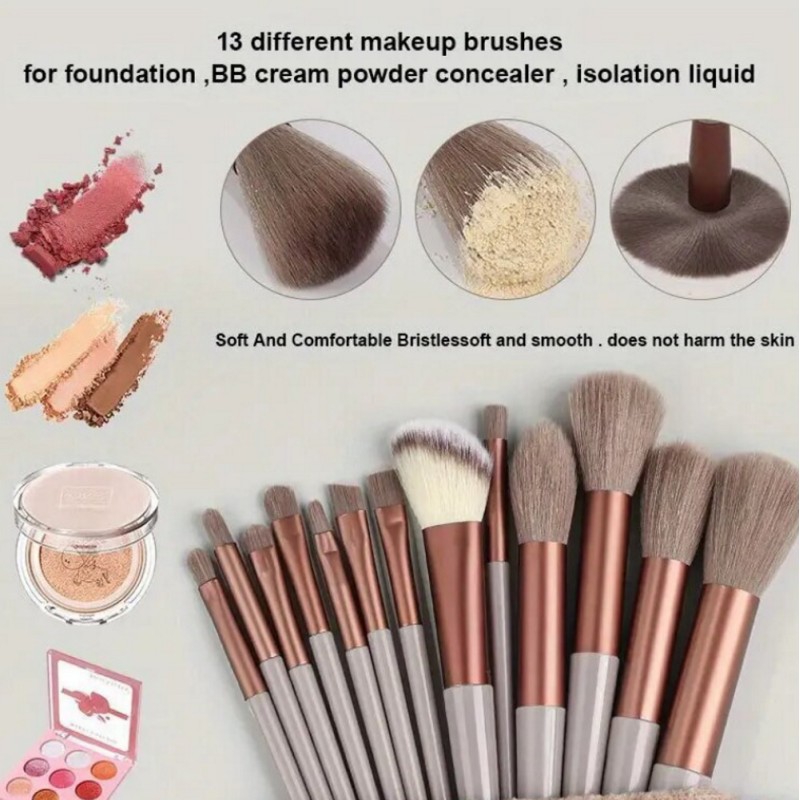 Σετ 13 πινέλα μακιγιάζ φτιαγμένα από απαλή τρίχα, έτσι ώστε να επιτυγχάνεται η ομοιόμορφη εφαρμογή των προϊόντων μακιγιάζ στο πρόσωπο.