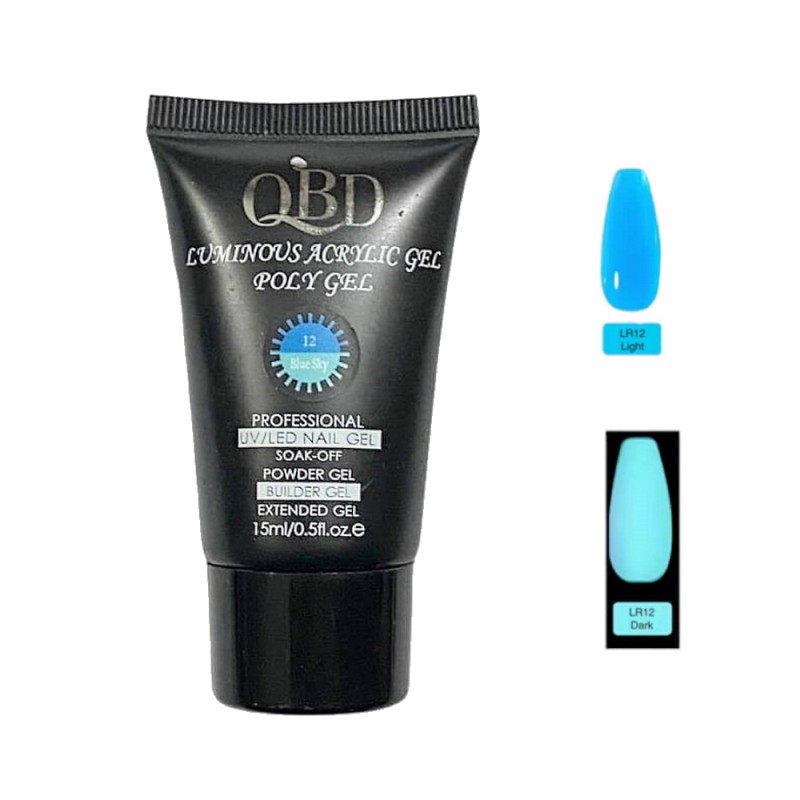 QBD Luminous Acrylic Gel Polygel N. 12 Blue Sky UV & LED 15ML