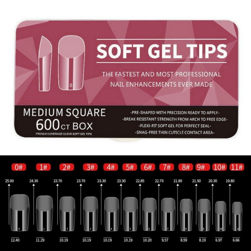 600 Medium Square Soft Gel Tips 11 Sizes σε Κασετίνα