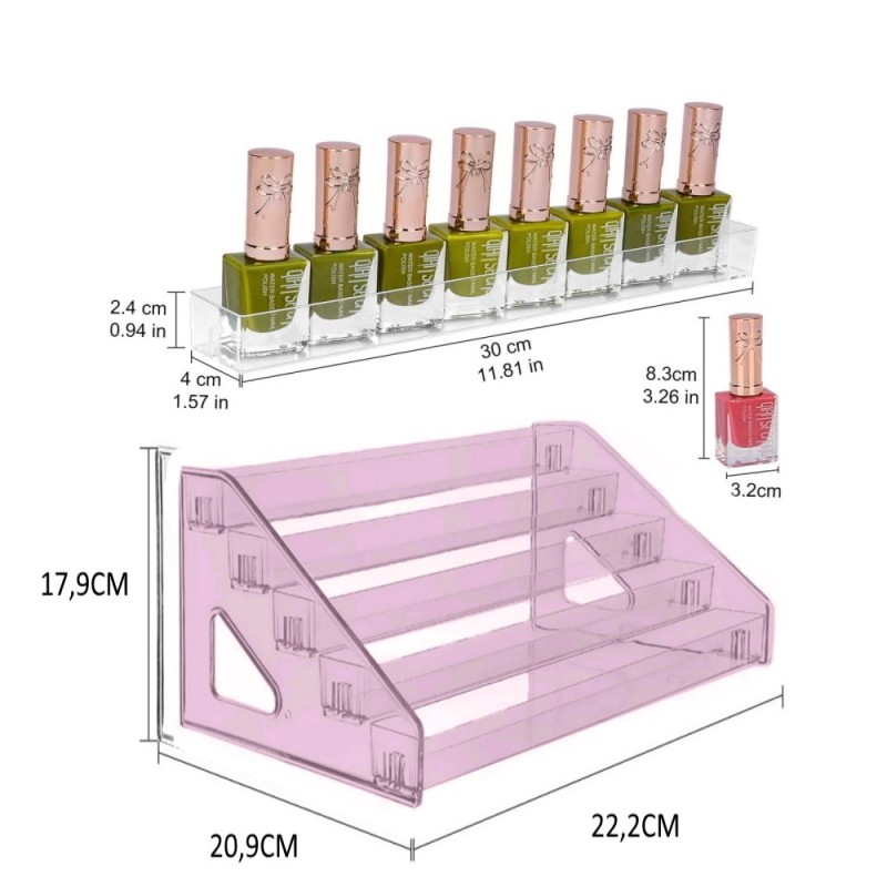 Σταντ 5 επιπέδων σε διαφανές χρώμα, ιδανικό για τοποθέτηση βερνικιών και καλλυντικών.