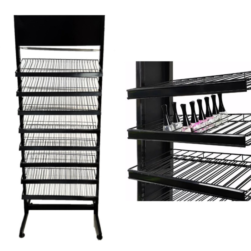 Σταντ 8 επιπέδων σε μαύρο χρώμα, ιδανικό για τοποθέτηση βερνικιών και καλλυντικών.