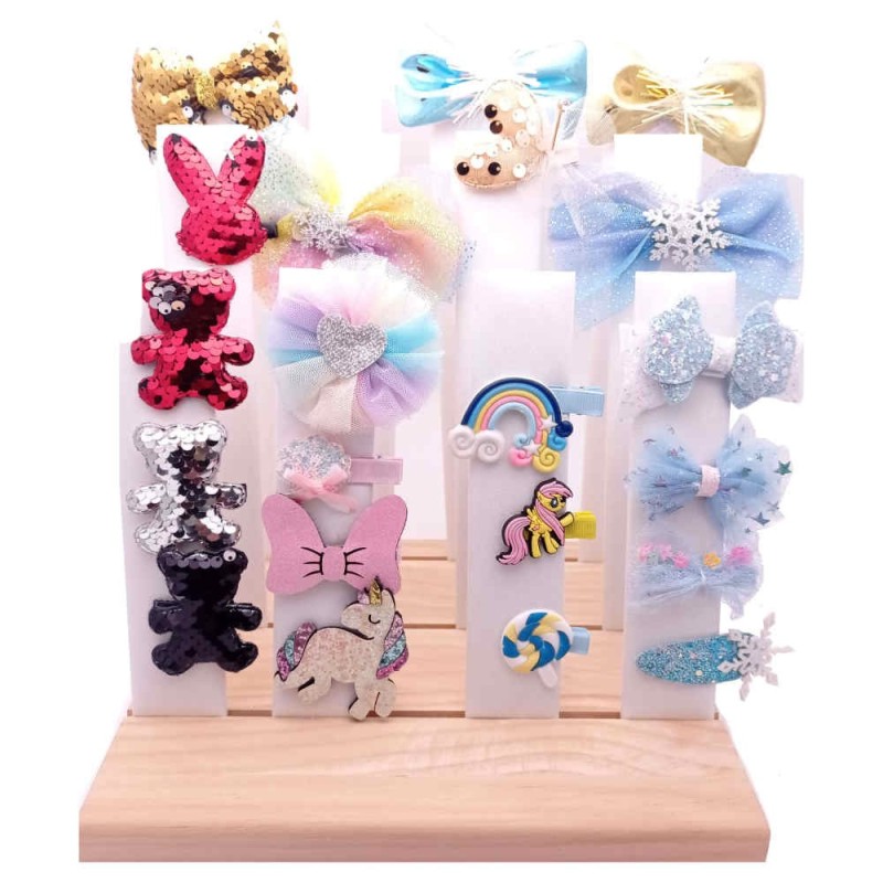- Σταντ Βάση για Κλιπ Μαλλιών με 12 Πλάκες & Ξύλινη Βάση