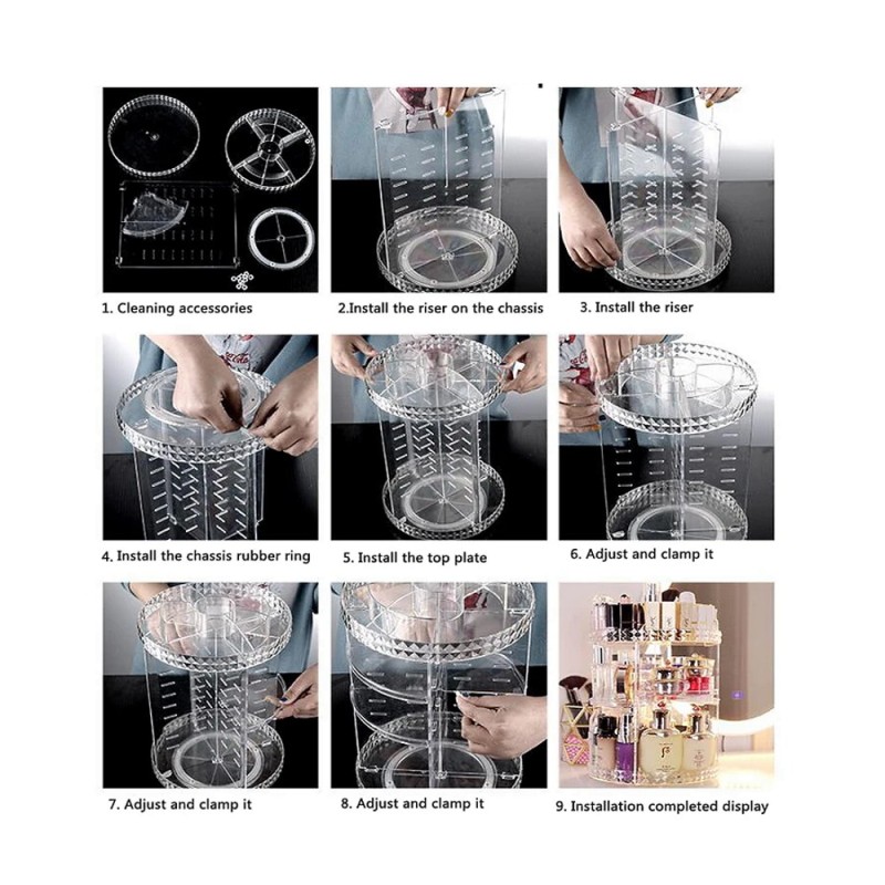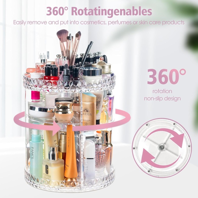 Περιστρεφόμενη διάφανη βάση καλλυντικών, για οργάνωση και αποθήκευση.