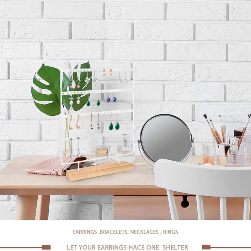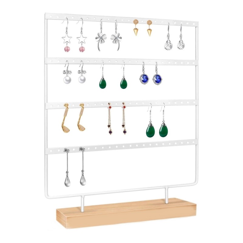 - Λευκό Μεταλλικό Σταντ 92 Θέσεων Για Σκουλαρίκια με Ξύλινη Βάση