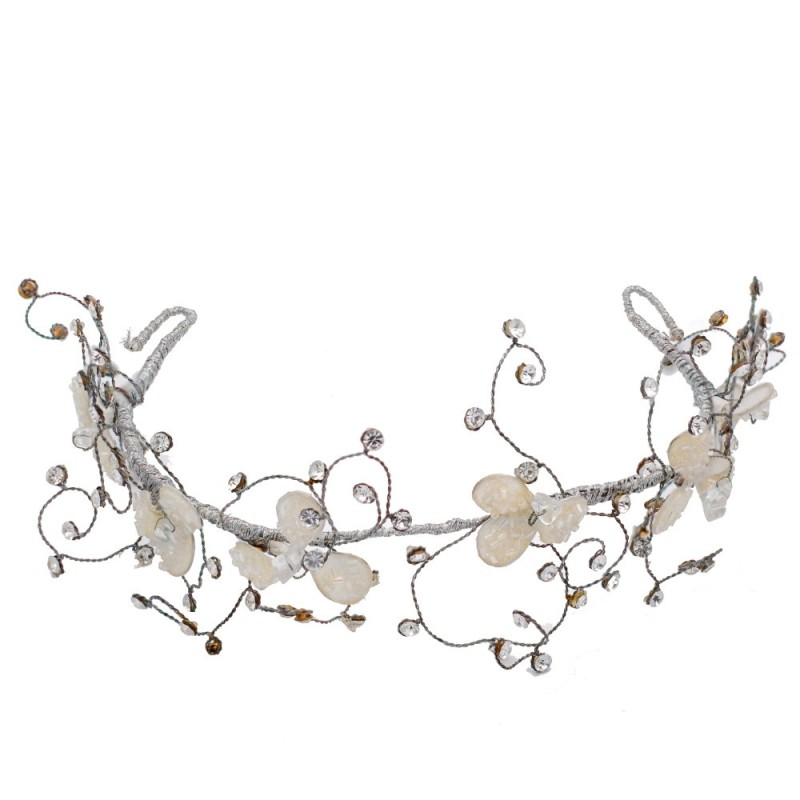 Τιάρα κορώνα γάμου ασημί χειροποίητη με στρας διαφανείς πέτρες μπεζ