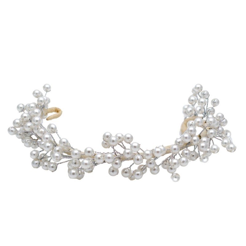 Τιάρα Κορώνα Γάμου Ασημί Χειροποίητη με Λευκές Πέρλες