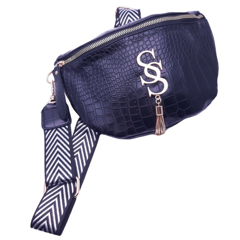 Μαύρη Γυαλιστερή Τσάντα Χιαστί με Λουράκι Διακοσμημένο με Βέλη