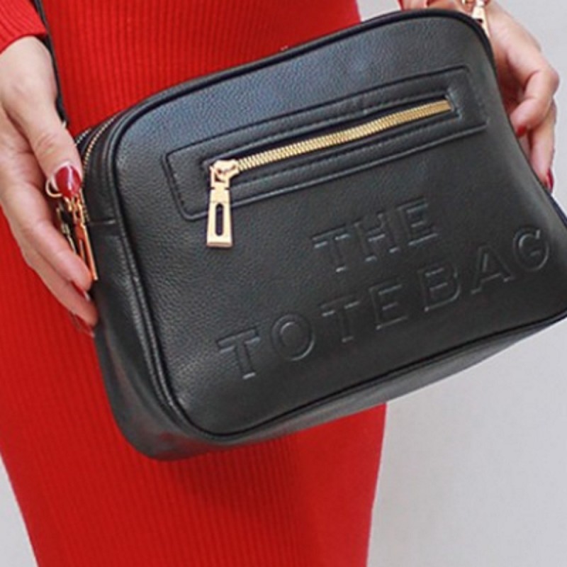 - Μαύρη Τσάντα Χιαστί με Ανάγλυφα Γράμματα
