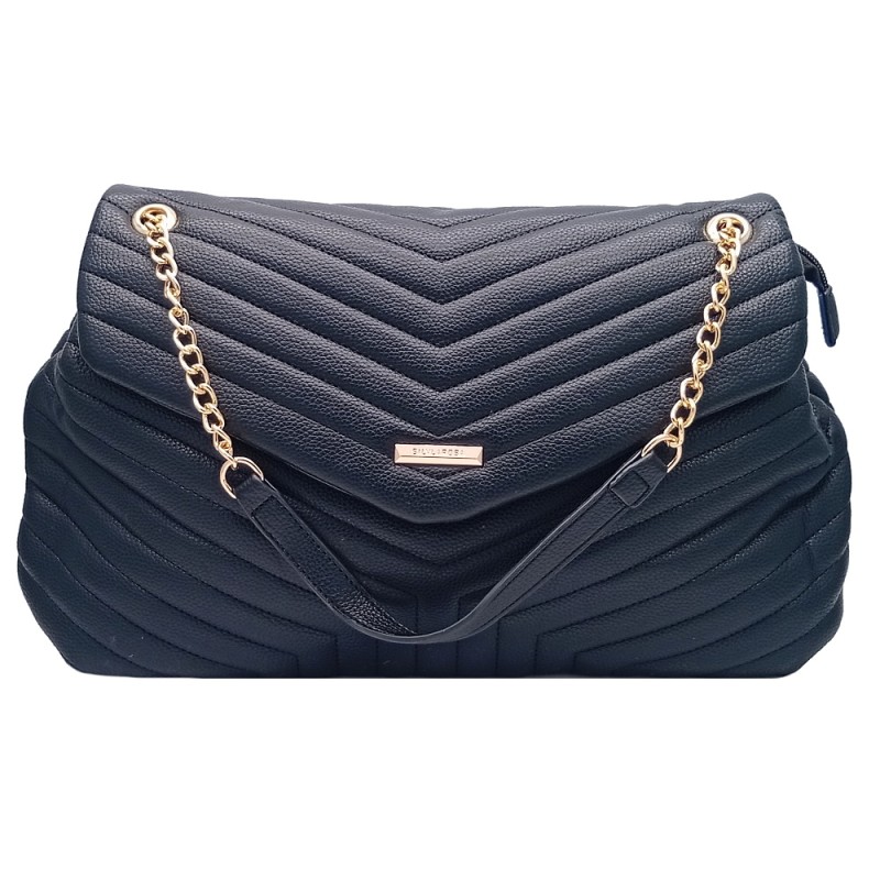 Μαύρη Τσάντα Ώμου με Χρυσαφί Αλυσίδα & Σχέδια Ραφές