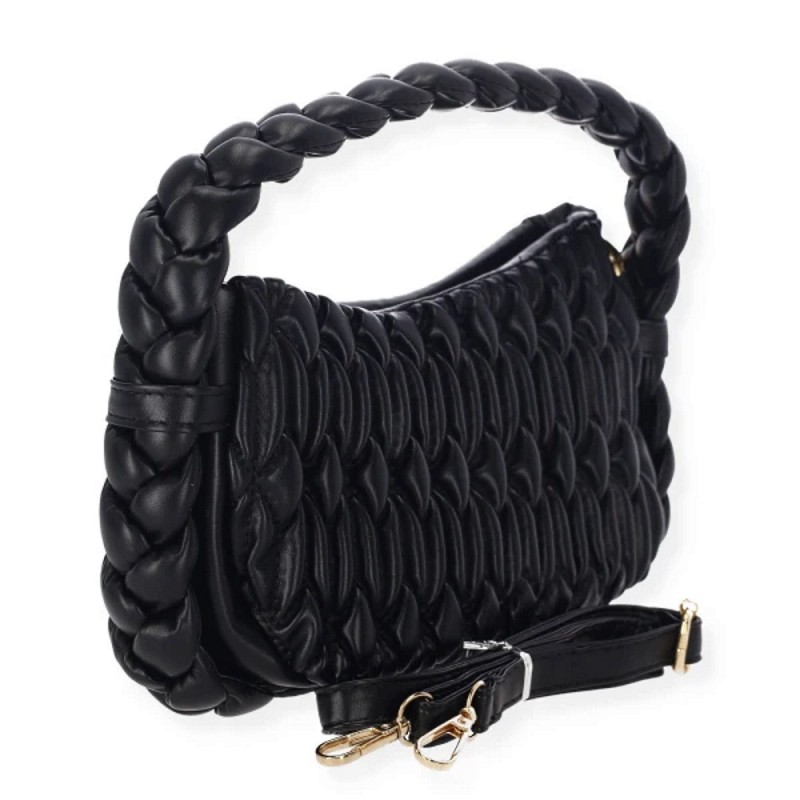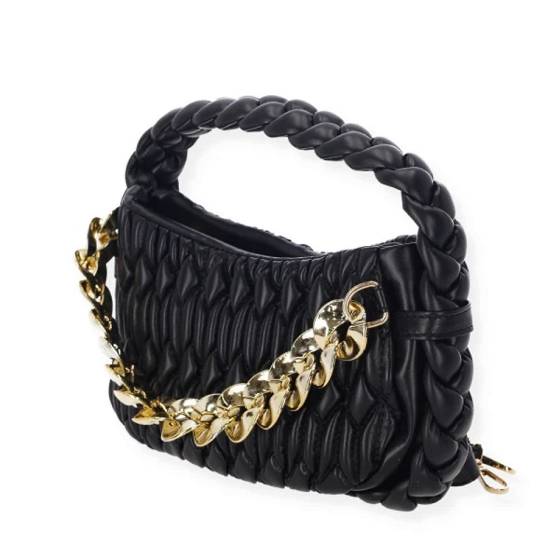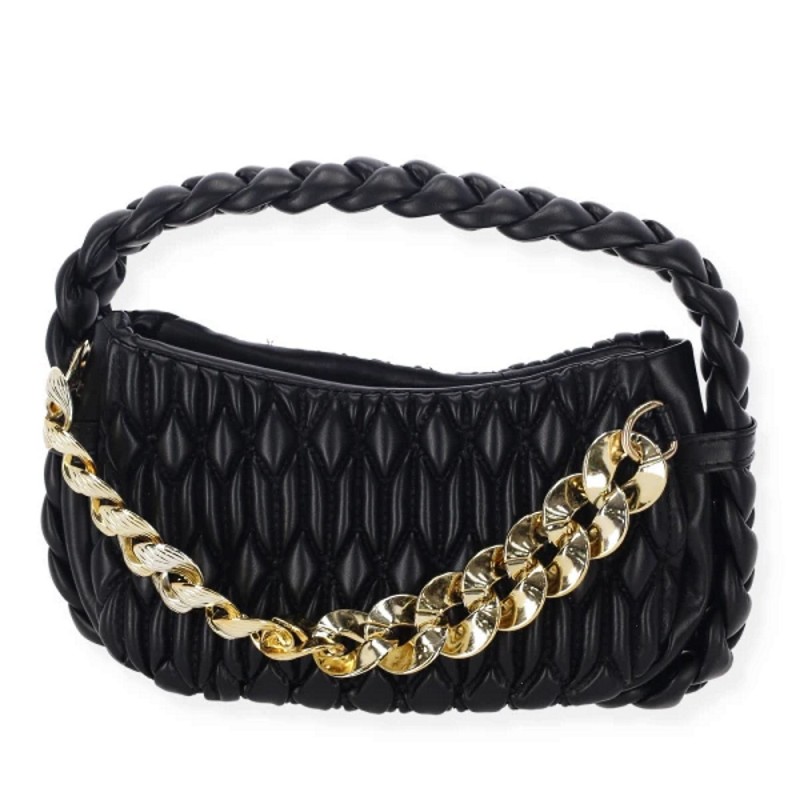 - Μαύρη Braided Τσάντα με Χρυσαφί Αλυσίδα