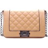 - Ορθογώνια Καπιτονέ Μπεζ Τσάντα με Λουρί Αλυσίδα