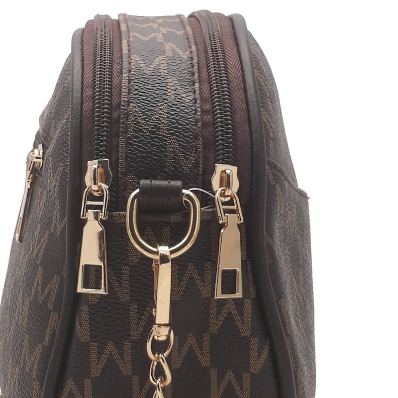 - Τσαντά Χιαστί με M Letter Print & Χρυσαφί Αλυσίδα