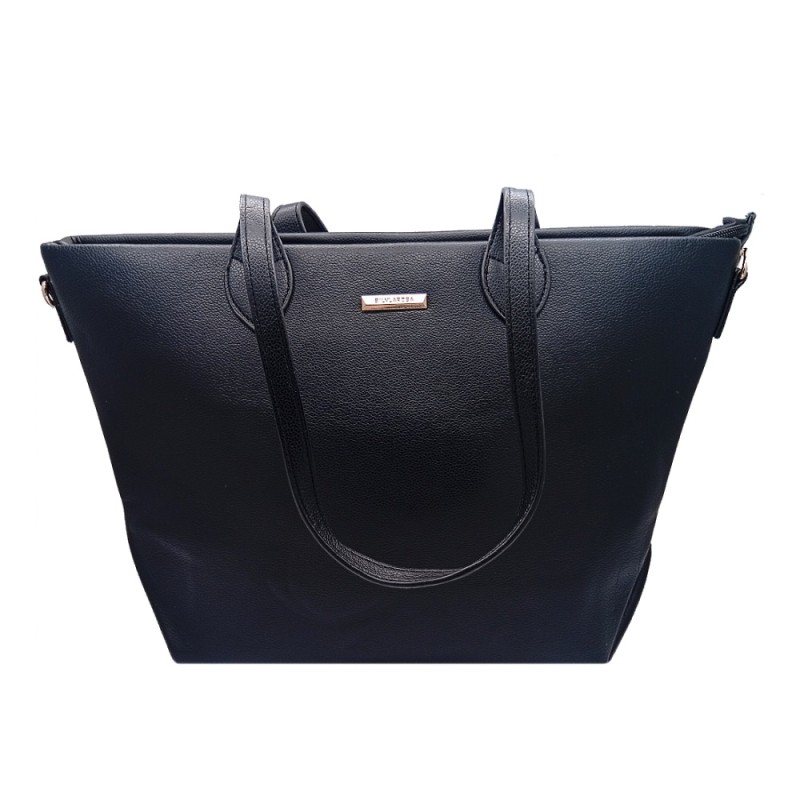 - Μαύρη Μονόχρωμη Τσάντα Ώμου & Χιαστί με Χρυσαφί Λεπτομέρειες