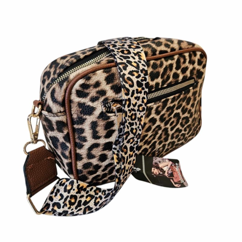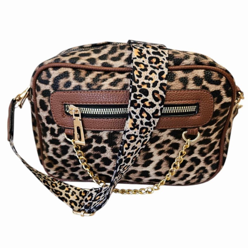 - Animal Print Τσάντα Χιαστί με Χρυσαφί Λεπτομέρειες