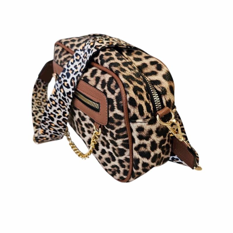 Animal Print Τσάντα Χιαστί με Χρυσαφί Λεπτομέρειες