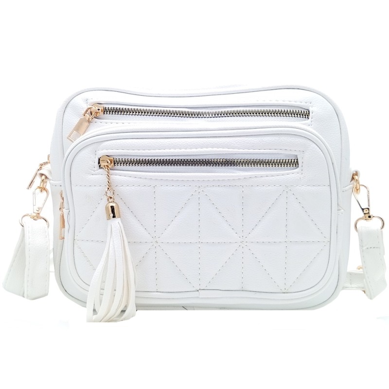 Λευκή Χιαστί Τσάντα με 4 Ανεξάρτητους Χώρους & Σχέδια Ραφές