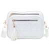 - Λευκή Χιαστί Τσάντα με 4 Ανεξάρτητους Χώρους & Σχέδια Ραφές