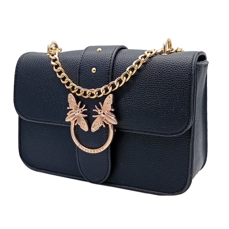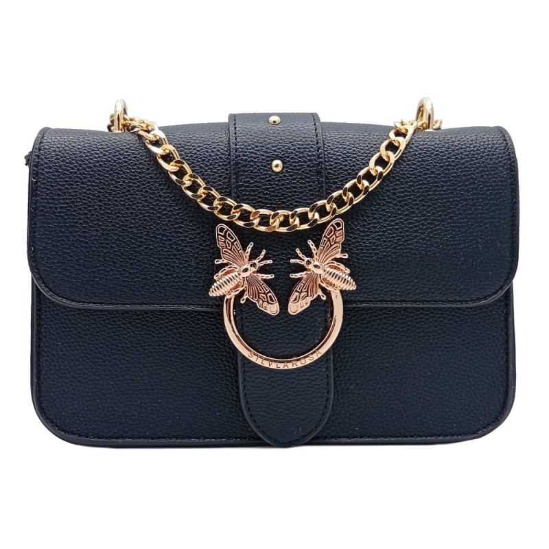 Μονόχρωμη Τσάντα Ώμου & Χιαστί με Χρυσαφί Κόσμημα Bee
