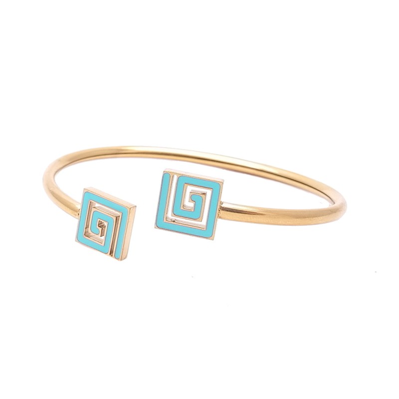 - Ατσάλινο Χρυσαφί Βραχιόλι με Τιρκουάζ Λεπτομέρειες