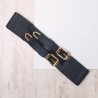 Μαύρη Ελαστική Ζώνη με Ιμάντες & Χρυσαφί Λεπτομέρειες